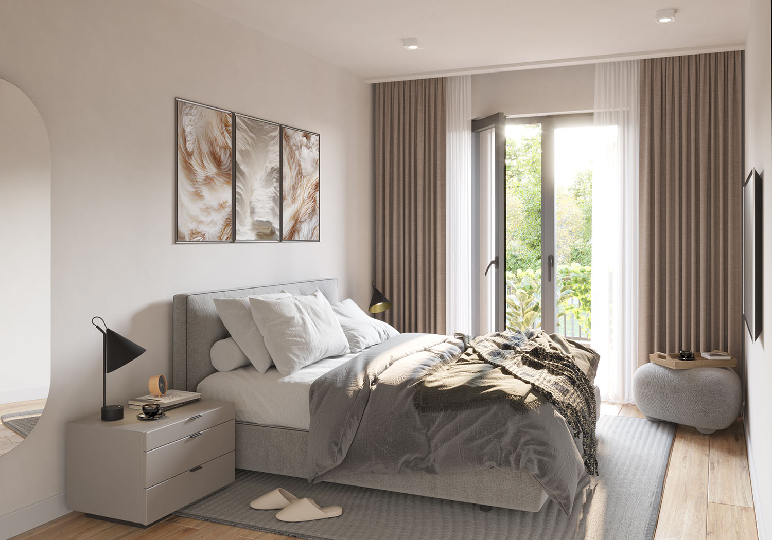 Das Niendorf Quartett zeichnet sich durch ein helles und offenes Wohnkonzept aus. Alle Häuser verfügen über Dachterrassen und Gärten, die nach Westen ausgerichtet sind und so den Sonnenuntergang ins Zentrum rücken. Mit mindestens zwei Außenbereichen pro Wohnung und bodentiefen Fenstern wird eine lichtdurchflutete Atmosphäre geschaffen, die die Grenzen zwischen drinnen und draußen aufhebt und so für ein unvergleichliches Wohngefühl sorgt.