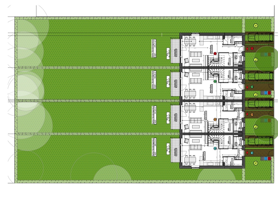 Jedes Townhaus verfügt über einen privaten Garten, der sich auf der ruhigen Westseite des Grundstücks befindet, abgewandt vom Straßenverkehr. Hier können Sie in aller Stille die Sonne genießen und Ihren grünen Rückzugsort nach eigenen Vorstellungen gestalten. Die Vielseitigkeit unserer Planung ermöglicht es, individuelle Wohnträume zu verwirklichen und bietet gleichzeitig Raum für Entfaltung und Privatsphäre.
